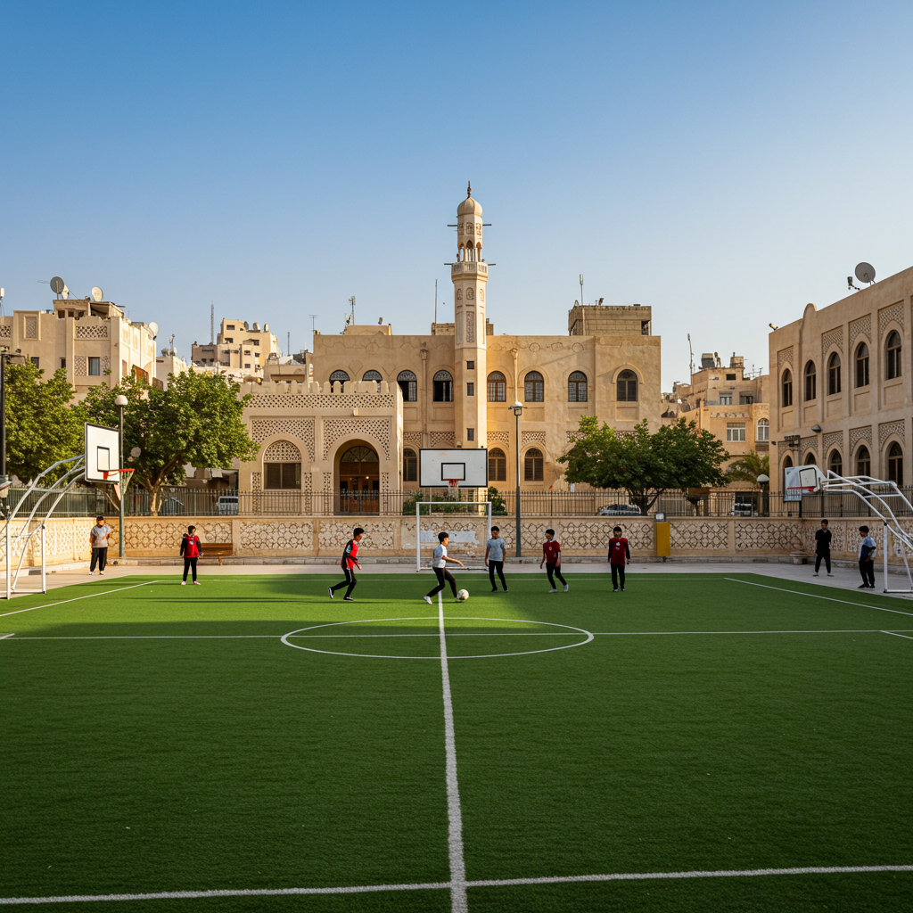 Large outdoor spaces for football, basketball, and other activities that promote teamwork, physical fitness, and school spirit.